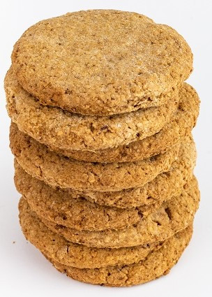 Rövid leírás:  tej-, tojásmentes  szójamentes  vegetáriánus termék  GMO mentes  tartósítószer mentes  nettó tömeg 200g  ajánlott tárolás: szobahőmérsékleten 90 napig. Összetevők: teljesőrlésű tönkölybúzaliszt*, pálmazsír*, nádcukor*, almapor*, teljesőrlésű zabliszt*, víz, zabpehely*, térfogatnövelő szer: sütőpor* (kukoricaliszt*, nátrium-hidrogén-karbonát (szódabikarbóna), borkősav), fahéj* A*-gal jelölt összetevők ellenőrzött ökológiai gazdálkodásból származnak. 100g Termék átlagos tápértéke: Energia 1800,3KJ /428,8Kcal Zsír 21,3g Amelyből telített zsírsavak 12,4g Szénhidrát 50,6g Ebből cukrok 22g Rost 6,1g Fehérje 6,3g Só 0,2g