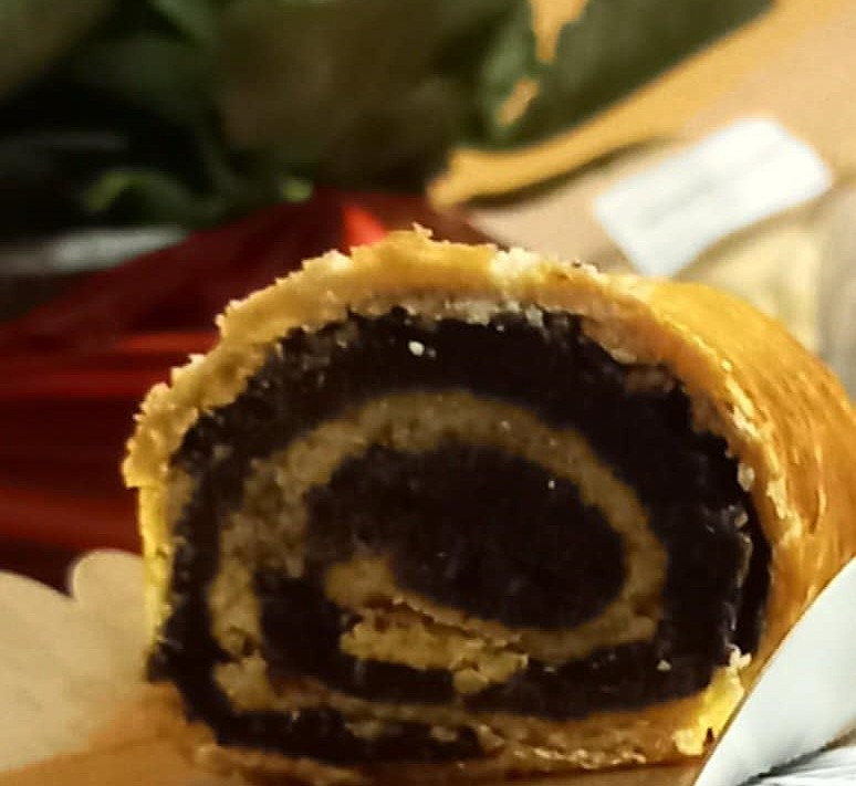 Rövid leírás: Hagyományos tészta búzaliszttel, kovásszal, vajjal, tojással, csak éppen bio alapanyagokból készítve, tartósítószer és színezékek nélkül. A termék 50 %-a töltelékből áll. Nem tartalmaz: szóját, élesztőt, pálmazsírt, E-számmal jelölt anyagokat. Édesítése: cukor. Ajánlott tárolás: száraz hűvös helyen 21 napig