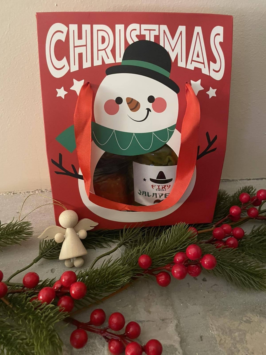 Karácsonyi chili ajándékcsomag Tartalmaz: 1 db Jalapeno savanyúság (csípősség 10/3)  720 ml 1 db Jalapeno krém (csípősség 10/3)  100g